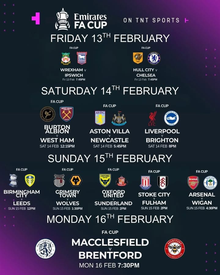 A huge weekend of FA Cup football and Six Nations action is coming up ๐๐ Saturday starts at 12:15pm with Burton Albion v West Ham in the FA Cup. The rugby follows at 2:10pm as Ireland face Italy, before a feisty Calcutta Cup clash at 4:40pm when Scotland take on England. FA Cup football returns at 5:45pm with Aston Villa v Newcastle, the pick of the fourth round ties, before Liverpool v Brighton rounds off Saturday night at 8pm. Sunday brings more FA Cup action from 12pm, with Wales v France at 3:10pm the final Six Nations game of the weekend. Arsenal v Wigan at 4:30pm then brings the FA Cup ties to a close ๐ป๐บ