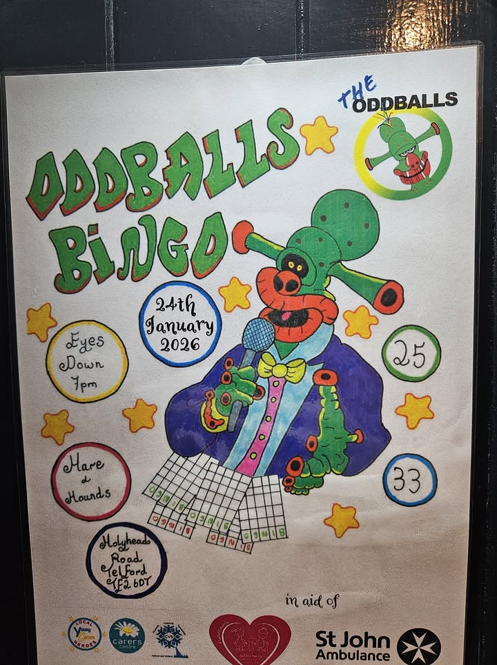 Join us for a cracking night of bingo with The Oddballs 🎉 Expect plenty of laughs, a great pub atmosphere and the chance to win prizes — all in aid of St John Ambulance